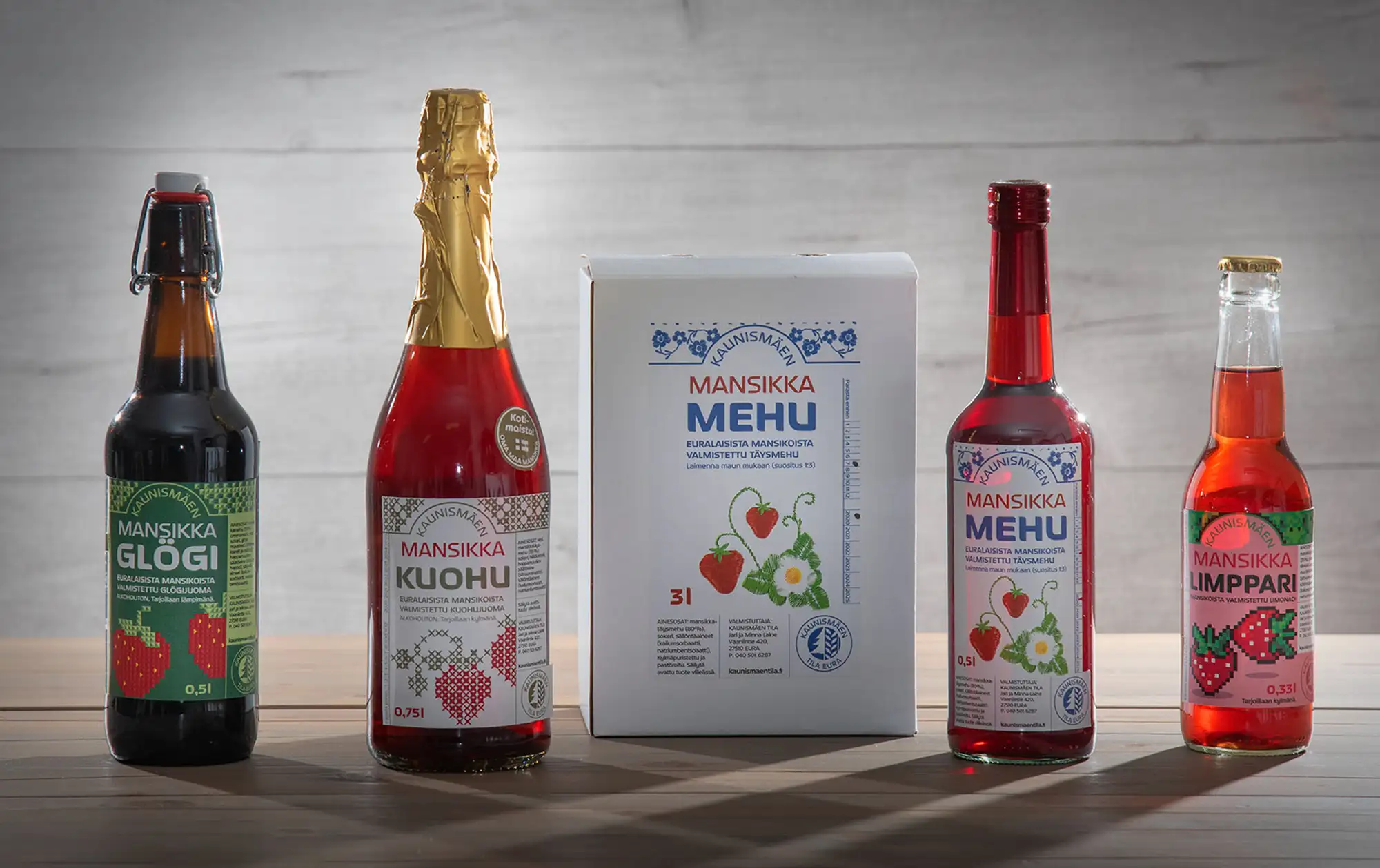 Toteutimme Kaunismäen Tilalle uudet verkkosivut, mansikkajuomien uudet etiketit sekä valokuvauksia.