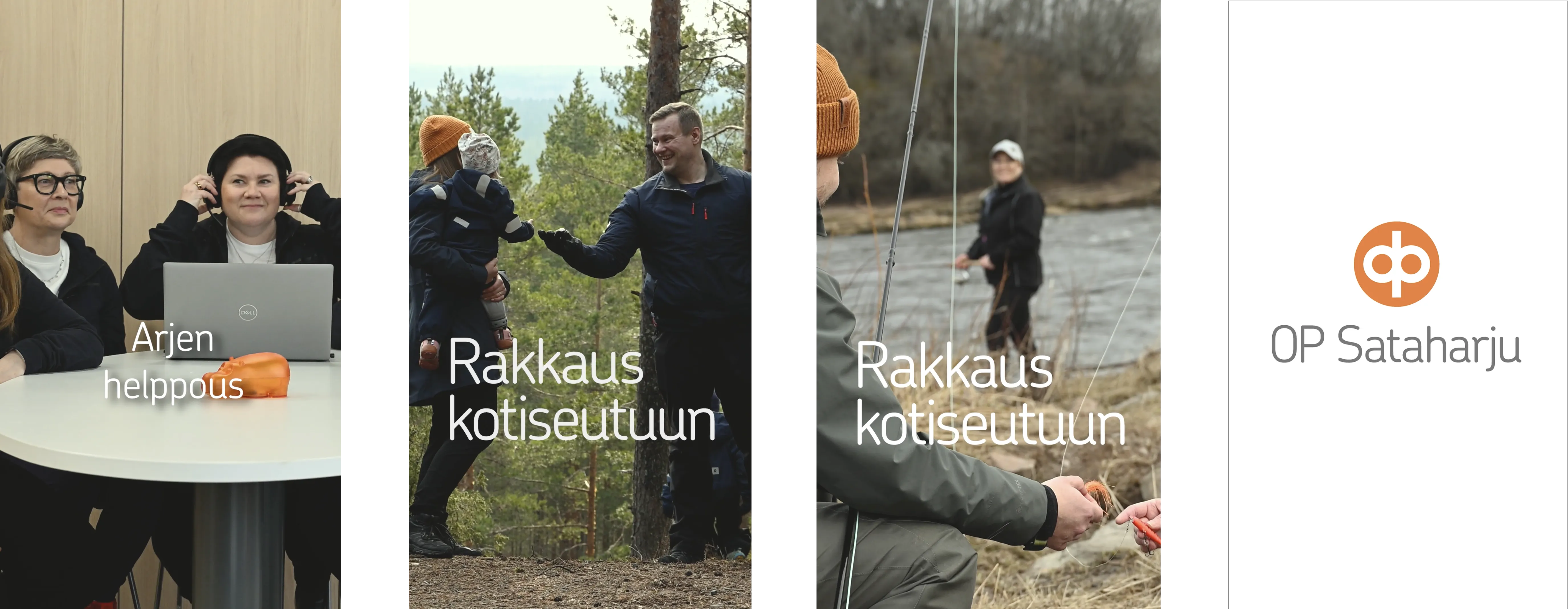 Toteutimme OP Sataharjun video-ja valokuvaukset useissa lokaatioissa. Markkinointivideoita käytettiin sosiaalisessa mediassa kertomaan usean pankin yhdistymisestä yhdeksi OP Sataharjuksi. Kampanjaan kuuluivat myös lehti-ilmoitukset, tiimikuvaukset ja OP Sataharjun oma lehti.